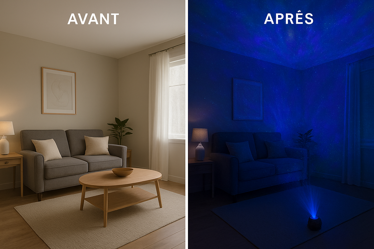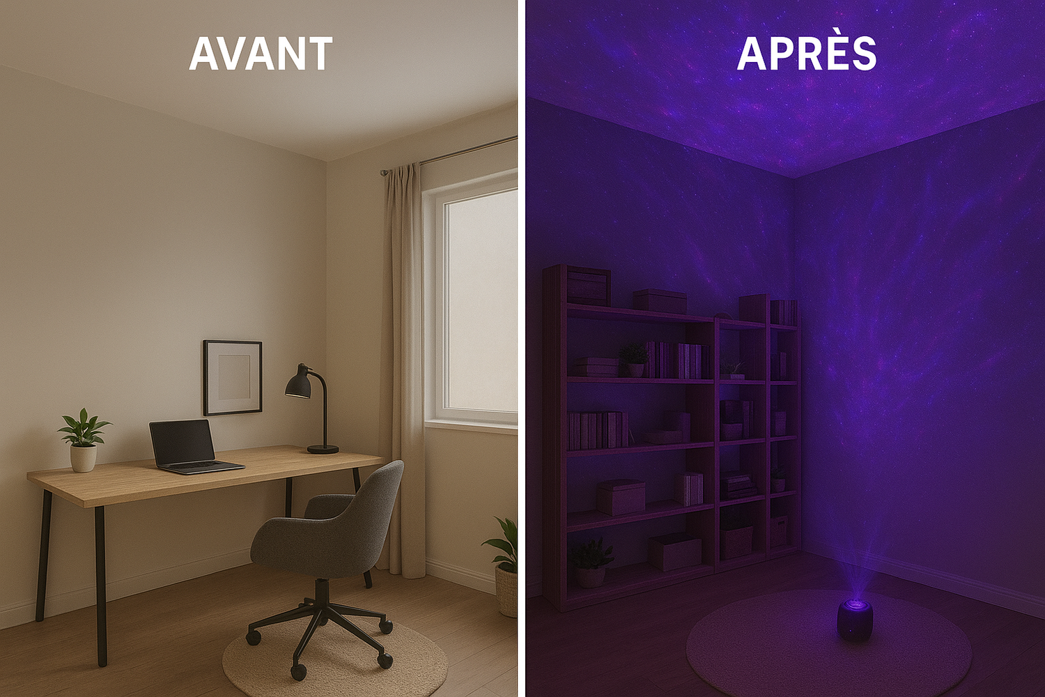 Le projecteur de lumière transforme instantanément vos pièces, créant une ambiance chaleureuse et immersive, sans effort.